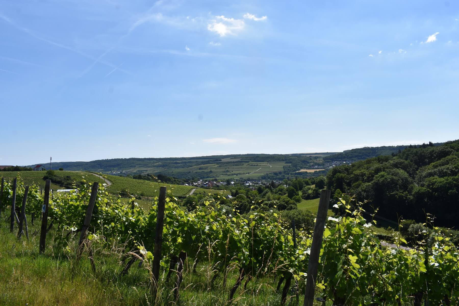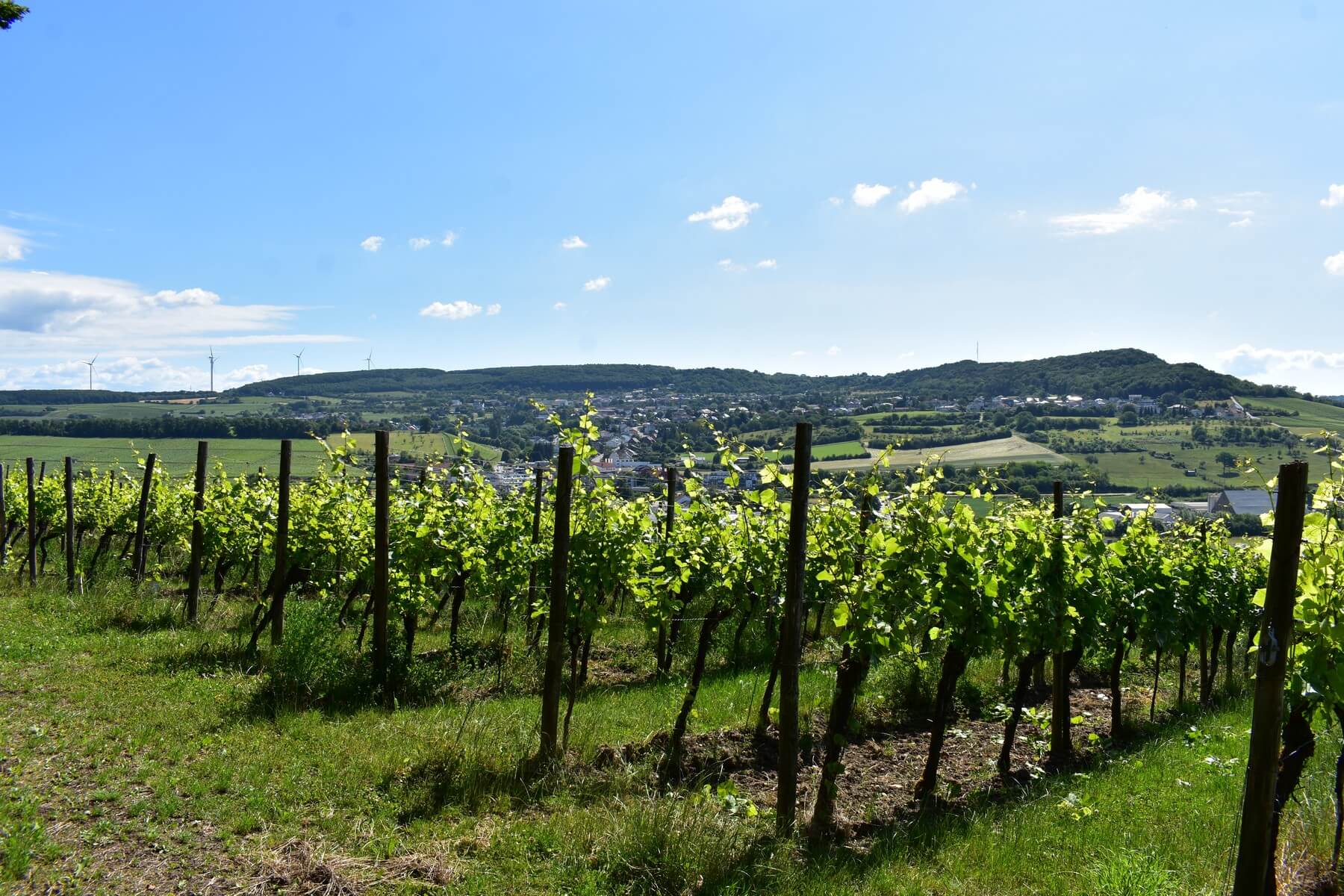 Die Rundwanderroute Grevenmacher 2 führt am Begin stadtauswärts in die Weinberge, bevor man sich nach kurzem Aufstieg in den Wald Groussfooscht begibt. Ihr könnt von hier oben einen herrlichen und wunderschönen Blick auf das Moseltal genießen. Nachdem man den Wald durchquert habt, kommt ihr wieder auf die Straße. Hier müsst ihr kurz an der Hauptstraße entlang und dann biegt ihr links ab in den Weinberg des Rouderberg. Von dort aus geht es dann wieder zum Ausgangspunkt zurück.