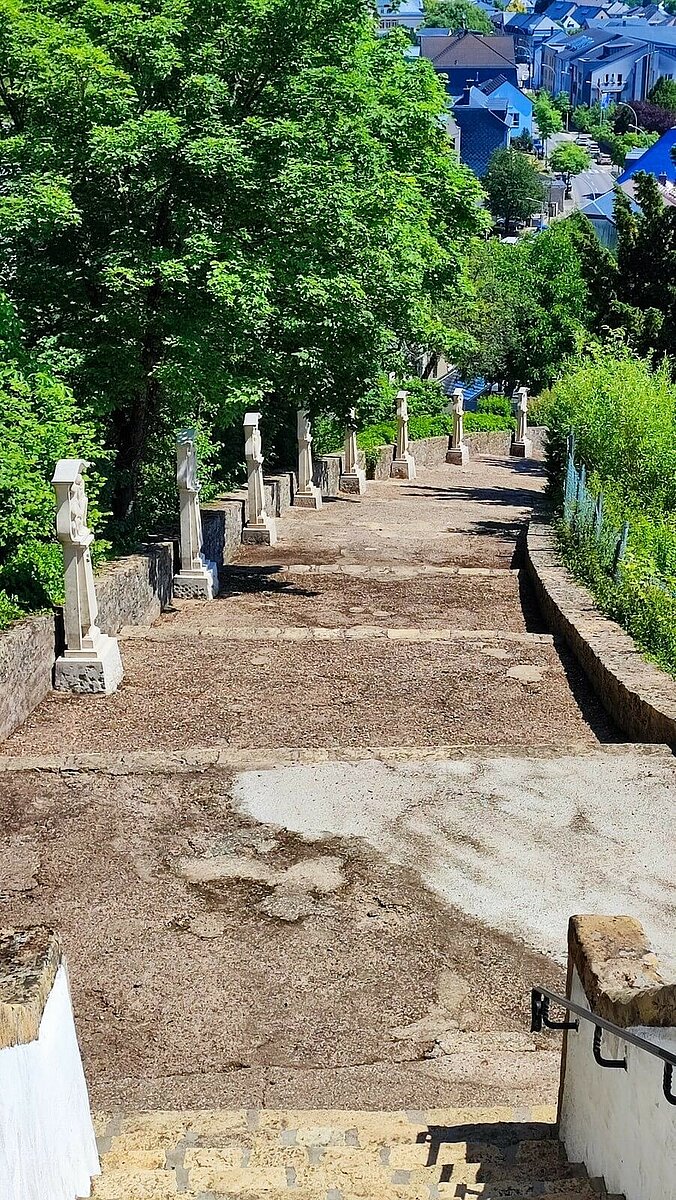 Ein sehr schöner Rundweg mit einigen landschaftlichen Höhepunkten und tollen Aussichten. Der Weg führt entlang der Mosel bis zum Tal der Kelsbaach, an dem man umkehrt und nochmals ein Stück nach oben wandert. Auf dieser Anhöhe hat man einen traumhaften Blick auf die Mosel. Danach folgt man dem Pfad wieder parallel zum Fluss. Nachdem man die Kreuzkapelle hinter sich gelassen hat, geht es die Stufen des Kreuzwegs hinab, um sich wieder am Ausgangspunkt wiederzufinden. Diese Wanderroute ist nicht für Fahrräder oder Kinderwagen geeignet.