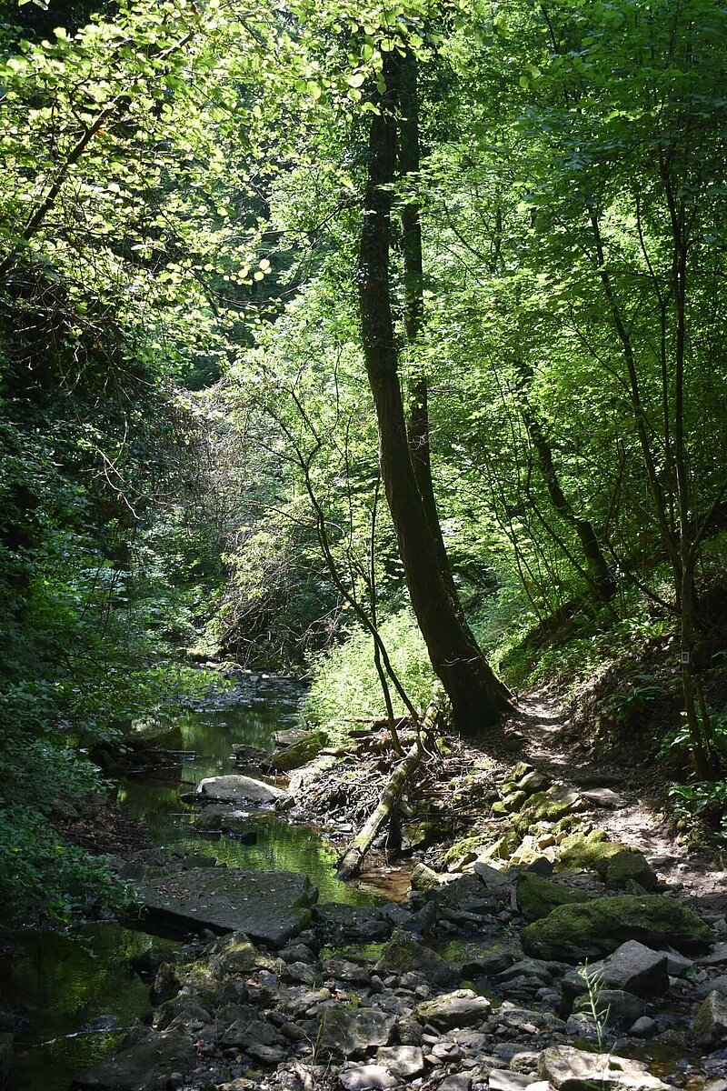 Für heute stand diese sehr hoch bewertete Traumschleife auf meinem Programm. Diese Traumschleife führt größtenteils durch das Naturschutzgebiet "Manternacher Fiels". Parken kann man ganz bequem am Bahnhof. Von da aus geht es dann über die Straße "am Burfeld" über Weideland und durch Streuobstwiesen in einen beeindruckenden Schluchtwald. Man folgt dem Flusslauf der "Syre", anschließend führt der Weg entlang der beeindruckenden Kalksteinfelsformation "Michelslay". Irgendwann hiernach stoßt ihr dann plötzlich auf einen Weinberg, mitten im Wald. Danach geht es durch das enge Kerbtal des Schlammbaches bevor man das Lelliger Plateau mit seinen atemberaubenden Aussichten erreicht. Der Abstieg führt euch über Treppenstufen alter Weinbergsmauern. Danach seid ihr dann auch schon wieder auf dem Rückweg und fast am Ziel angekommen.
